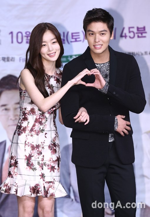 배우 한선화(왼쪽), 이장우가 13일 오후 서울시 마포구 상암MBC에서 열린 MBC 새 주말드라마 ‘장밋빛 연인들’의 제작발표회에서 포토타임을 하고 있다.