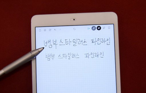 그러다 뱀부(BAMBOO) 스타일러스 파인라인(Fineline, CS-600C, 이하 파인라인)을 써볼 기회가 생겼다. 결론부터 말하자면, 파인라인은 달랐다. 일단 화면을 누를 때마다 '통통' 튀던 고무팁이 아니라 S펜처럼 뾰족하고 플라스틱 소재다. 팁 두께는 1.9mm로 상당히 얇다. 덕분에 전용 애플리케이션(이하 앱)을 활용하면 의도대로 안정적으로 선을 그을 수 있었다.