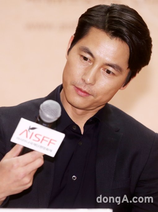배우 정우성이 14일 오전 서울 종로구 금호아트홀에서 열린 제12회 아시아나 국제단편영화제 상영작 발표 기자회견에서 마이크 테스트를 하고있다.
