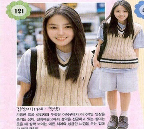 특히 베이지색 브이넥 니트와 아이보리색 반바지를 입고 있는 김사은의 풋풋한 모습이 인상적이다.