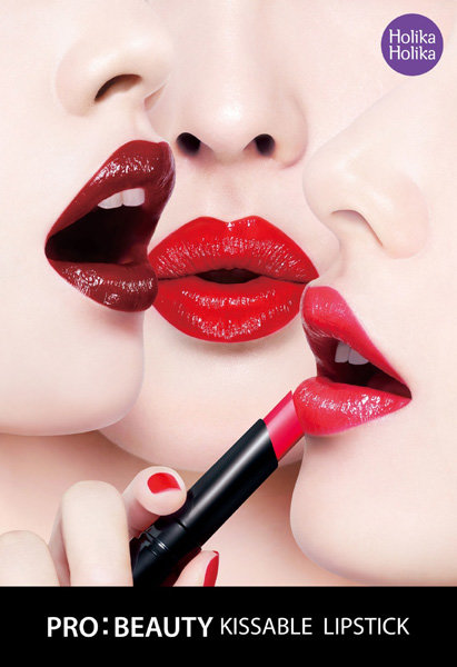 홀리카 홀리카의 ‘프로:뷰티 키써블 립스틱(2.5g·9900원)’은 입술에 닿는 텍스처를 여성의 입술 곡선과 동일하게 만든 ‘키스하듯 입술에 착 감기는 초밀착 립스틱’이다. 오래 사용해도 특수한 커브 모양이 변하지 않는 인체공학적 설계로, 단 한번의 터치로도 입술의 굴곡진 부분까지 섬세한 컬러 표현이 가능해 매혹적인 입술을 완성할 수 있다. 또 텍스처는 촉촉하면서도 발색력이 뛰어나 입술에 생기를 더해 립스틱만으로도 얼굴빛을 환하게 밝혀준다.