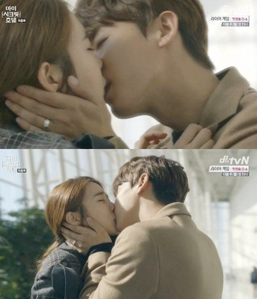 ‘마이시크릿호텔‘ 진이한과 유인나가 7년 전 오해를 풀고 키스로 사랑을 확인했다.