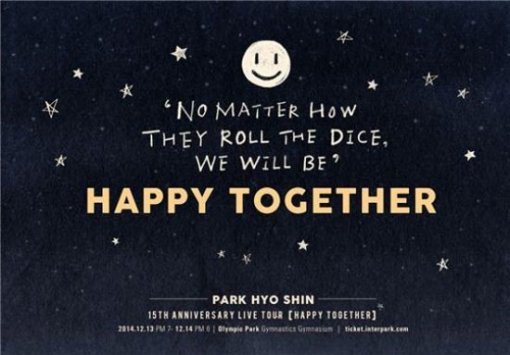 2012년 '워 이즈 오버(War is over)' 이후 2년 만에 개최되는 박효신의 단독 콘서트 'HAPPY TOGETHER'는 올해로 데뷔 15주년을 맞이한 박효신의 음악인생을 총망라한다.