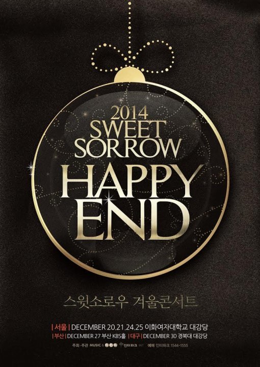 매년 연말 콘서트로 팬들을 만난 스윗소로우는 올해도 팬들과 한 해를 행복하게 마무리하고자 겨울 콘서트 ‘HAPPY END’를 마련한다.