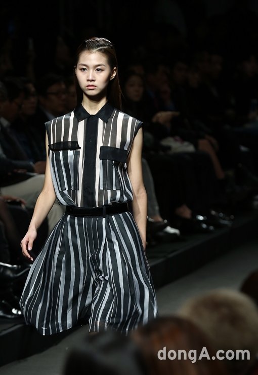 모델이 17일 오후 서울시 중구 동대문디자인플라자에서 열린 ‘2015 S/S 서울패션위크’ 송지오 디자이너 ‘SONGZIO’ 콜렉션에서 런웨이를 걷고 있다.