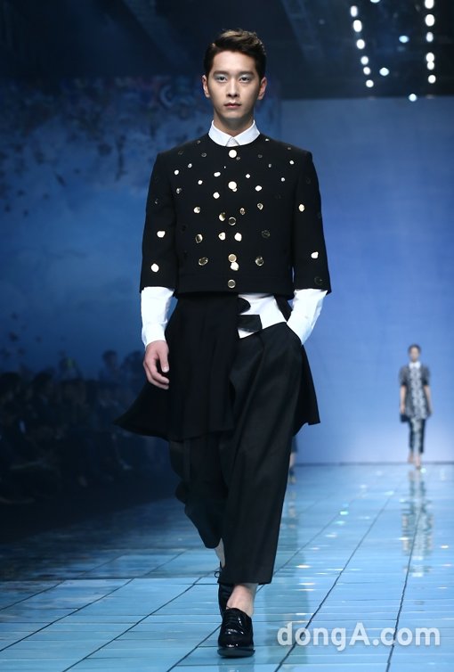 2PM의 멤버 황찬성이 19일 오후 서울시 중구 동대문디자인플라자에서 열린 ‘2015 S/S 서울패션위크’ 이상봉 디자이너 ‘LIE SANGBONG’ 콜렉션에서 런웨이를 걷고 있다.