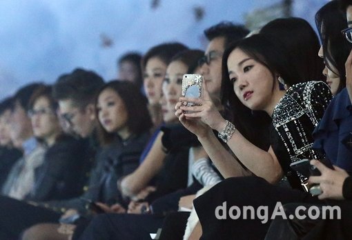 방송인 낸시랭이 19일 오후 서울시 중구 동대문디자인플라자에서 열린 ‘2015 S/S 서울패션위크’ 주효순 디자이너 ‘PAUL&ALICE’ 콜렉션에서 런웨이를 촬영하고 있다.