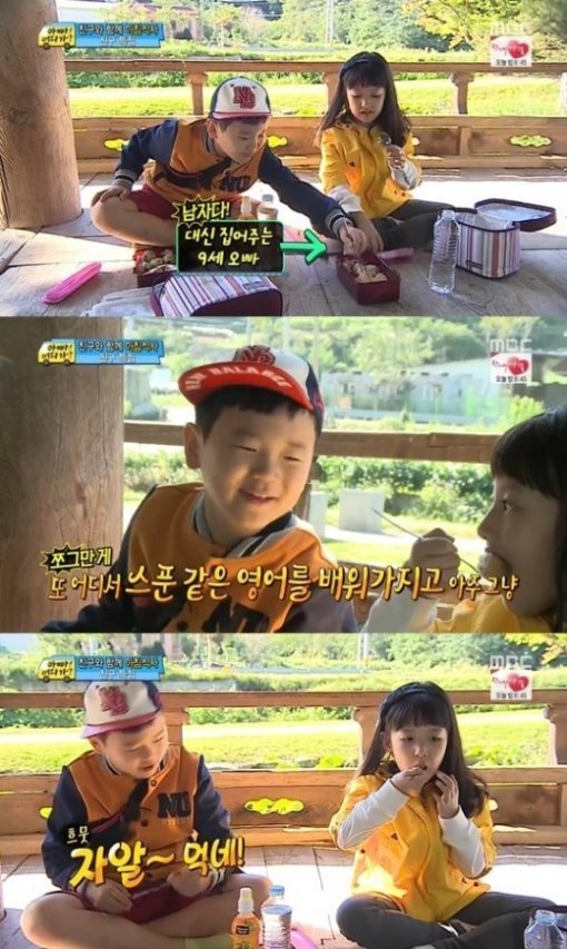 19일 방송된 MBC '일밤-아빠 어디가'에서는 윤민수 아들 윤후와 김민율 절친 송지민이 함께 도시락을 먹는 모습이 전파를 탔다.