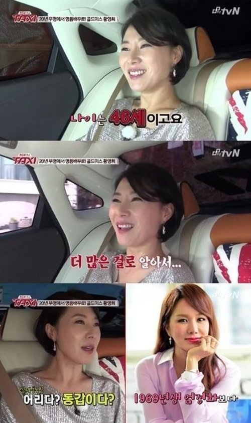 이날 '택시' 방송에서 황영희는 "드라마에서 도씨 역을 맡아 연기한 황영희다"고 자신을 소개하며 "46세다"고 나이를 공개했다.