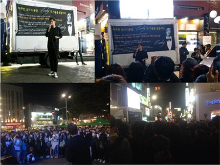 가수 나윤권이 앨범 발매를 앞두고 게릴라 콘서트를 열었다.