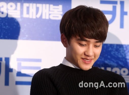 배우 도경수가 22일 오후 서울 광진구 롯데시네마 건대입구에서 열린 영화 '카트' 언론배급시사회에 참석해 염정아의 발언을 듣고 있다. 이날, 염정아는 “도경수가 신인 배우로서 어떠냐”는 질문에 “도경수 엄마여서 행복했다”고 대답했다.