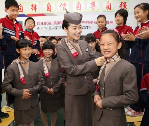 아시아나 항공은 23일(현지시각) 중국 쑤저우시 완핑 학교 분교에서 ‘아름다운 교실’ 자매결연을 맺었다. 아시아나항공은 완핑 학교 분교에 멀티미디어 세트10개, 칠판 10개, 피아노 1대 등을 전달하고, 승무원을 꿈꾸는 학생을 대상으로 직업특강을 실시했다.