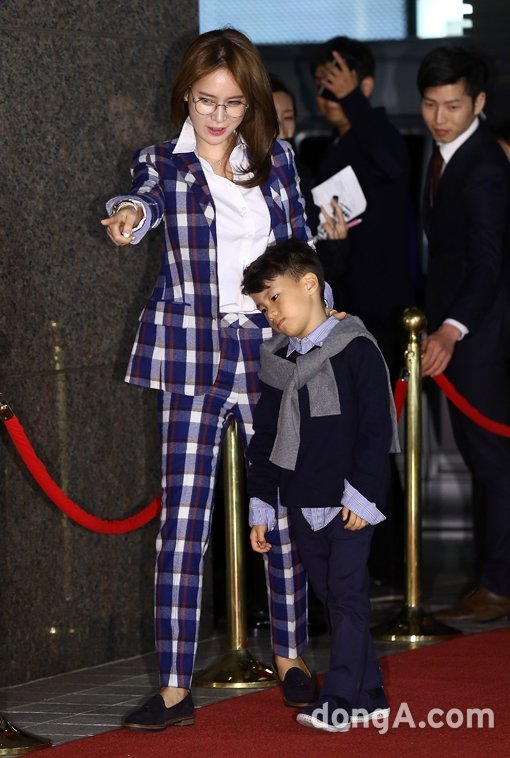 방송인 이혜원과 아들 리환군이 24일 오후 서울시 중구 신세계백화점 본점에서 열린 ‘2014 보그패션나잇아웃(VFNO)’에 참석하고 있다.