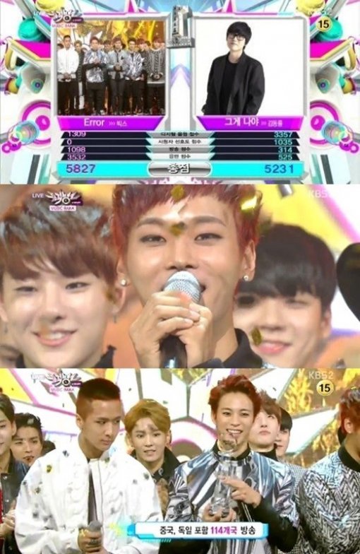 빅스는 24일 방송된 KBS2 ‘뮤직뱅크’에서 가수 김동률의 ‘그게 나야’를 제치고 1위에 올랐다.