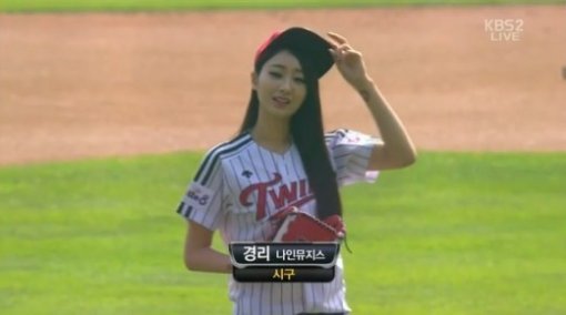 걸그룹 나인뮤지스 멤버인 경리가 야구 경기 시구에 나서 화제를 모았다.
