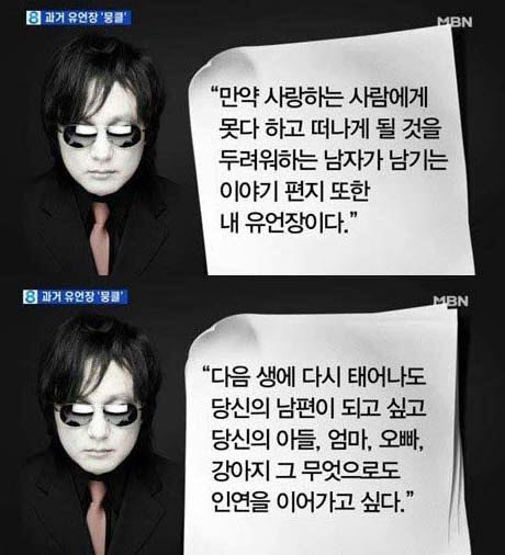 그는 이어 “집안 친척 중 급사한 분들이 몇 있는데 갑자기 돌아가신 분 같은 경우 가족들에게 마지막 작별인사를 못한다”고 유언장을 남긴 이유를 밝혔다.