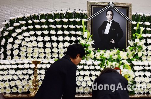 28일 오전 서울 풍납동 서울아산병원 장례식장에 마련된 故 신해철의 빈소에서 조문객들이 고인의 넋을 위로하고 있다.