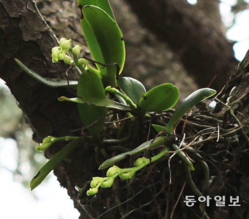 난초과 다년생 식물인 나도풍란은 주로 상록수나 바위에 붙어서 자라며 한반도에서는 남해안 일부와 제주도에서 자생했다.