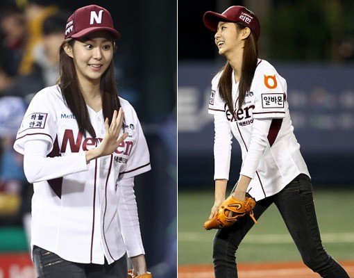 넥센 김성갑 2군 감독의 딸인 가수 유이의 패대기 시구가 화제를 모으고 있다.