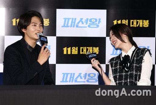 배우 주원(왼쪽), 설리가 31일 오후 서울시 성동구 왕십리CGV에서 열린 영화 ‘패션왕’ 언론시사회에 참석해 기자간담회를 하고 있다.