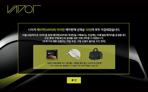 나이키골프(www.nikegolf.co.kr)는 무게중심을 혁신적으로 바꾼 모던 머슬 기술을 적용한 베이퍼 아이언 3종을 출시했다. 베이퍼 아이언 시리즈는 아이언의 무게중심이 대부분 힐 쪽으로 치우쳐있는 것과 달리 페이스 중앙으로 무게중심을 이동시켜 밸런스를 개선했고, 이 덕분에 기존 제품에 비해 관성 모멘트가 증가해 일관성 있는 퍼포먼스를 발휘한다는 것이 나이키골프의 설명이다. 또 스윙 시 에너지 손실을 최소화하는 효과로 약 4~6야드의 비거리 증가도 가능하다고 덧붙였다. 타이거 우즈와 로리 매킬로이가 아이언 개발에 참여했다. 헤드 모양에 따라 3가지 종류로 출시됐다. 소비자 가격은 109만~120만원.