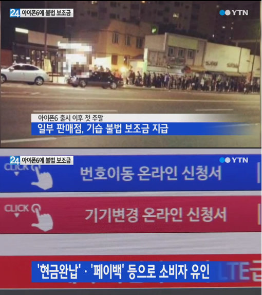 지난달 31일 출시된 애플의 스마트폰 아이폰6를 싸게 사려고 새벽에 줄을 서는 사태가 벌어졌다.