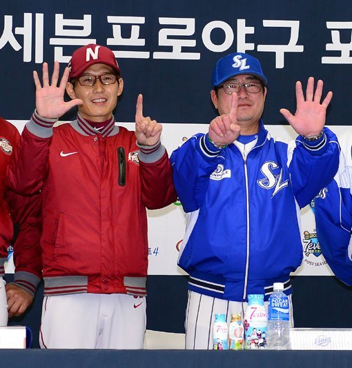2014 한국시리즈에서 맞붙는 삼성 류중일(51) 감독과 넥센 염경엽(46) 감독은 3일 대구시민체육관에서 열린 미디어데이에서 ‘한국시리즈가 몇 차전에서 끝날 것 같으냐’는 질문을 받자 나란히 ‘6차전’을 예상했다. 선수들은 좀 더 패기가 넘쳤다. 삼성 안지만과 박한이, 넥센 이택근과 강정호는 모두 한 손만 써서 다섯 개의 손가락을 내밀었다. 5차전에서 마무리하고 싶다는 의미다. 어느 쪽이든 생각은 같다. ‘상대에게 2패 이상은 하지 않겠다’는 결연한 의지. 다만 머릿속에 그리고 있는 승리 팀이 반으로 갈라졌을 뿐이다. 본격적인 한국시리즈의 시작을 앞두고 분위기는 벌써 후끈 달아올랐다.