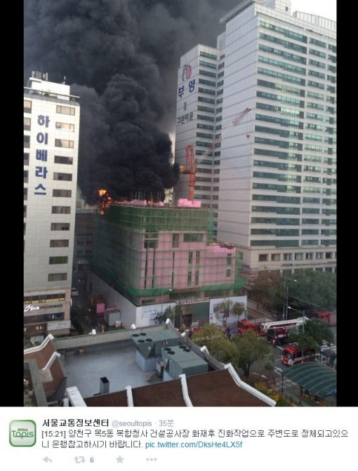 5일 오후 3시경 서울 양천구 목동 신축건물 건설 현장에서 큰 불이 났다.