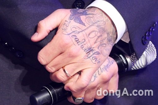 데이비드 베컴이 5일 오후 서울 용산구 한남동 그랜드하얏트호텔에서 열린 국내 최초 싱글 그레인 위스키 '헤이그 클럽' 국내 출시 행사에서 포토타임을 하고 있다.