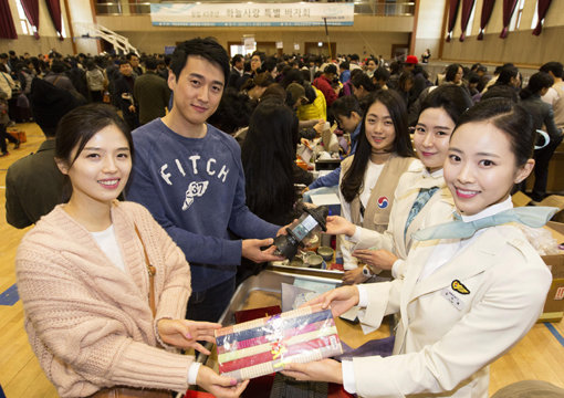 대한항공은 창립 45주년을 맞아 8일 서울 등촌동 마포 고등학교 체육관에서 ‘2014년 하늘사랑 특별바자회’를 열었다.