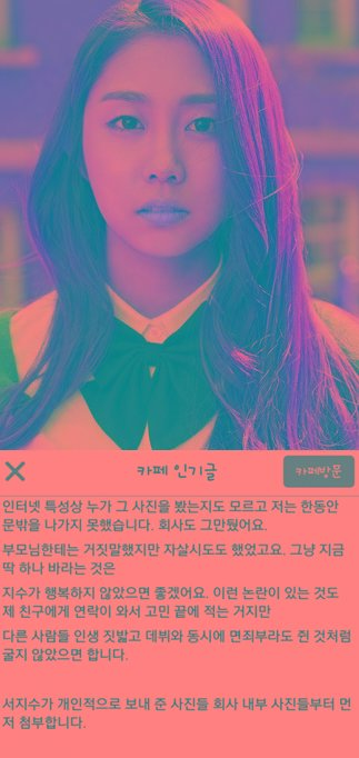 최근 온라인 커뮤니티 게시판에는 일부 누리꾼들이 러블리즈 서지수로부터 성적 피해를 받았다는 글을 올려 논란이 확산되고 있다.