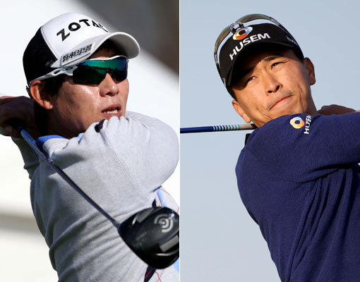 9일 인천 송도 잭니클라우스 골프장에서 막을 내린 한국프로골프(KPGA) 코리안투어 제30회 신한동해오픈에서 공동 2위에 오른 김봉섭(31·ZOTAC)과 문경준(32·휴셈). 우승의 꿈을 이루진 못했지만, 아쉬움보다는 행복한 미소로 가득했다. 둘은 나란히 8언더파 280타를 치며 공동 2위에 올랐다. 김봉섭은 프로 데뷔 이후 가장 좋은 성적이었고, 문경준은 프로 2번째 준우승이었다.