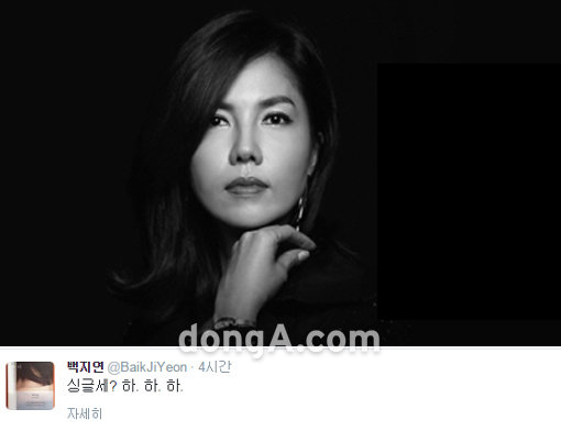 백지연은 12일 자신의 트위터 계정에 “싱글세? 하.하.하.”라는 글을 올렸다. 이는 이날 오전부터 각 포털사이트 실시간 검색어 순위 1위에 오른 ‘싱글세’ 논란에 대한 반응이다.