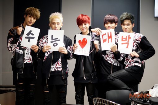 에이션은 12일 공식 페이스북에 “벌써 2015년도 수능이 코앞으로 다가왔어요~ 전국의 수 많은 수험생분들 많이 긴장되고 떨리실 텐데요. 그런 여러분에게 힘내시라고 저희 에이션이 응원 메시지를 전해드리려고 해요. 응원 팍팍 받으시고 힘내셔서 모두모두 좋은 결과 있으시길 바랄게요!! 화이팅!! :D”이라는 글과 함께 한 장의 사진을 게재했다.