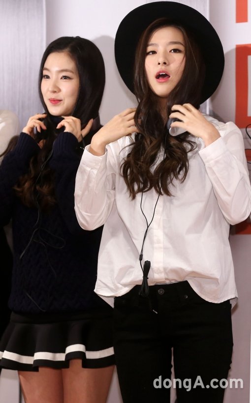 걸그룹 레드벨벳 아이린(왼쪽)과 슬기가 14일 오전 서울 종로구 마이크로임팩트 스퀘어 라운지에서 열린 Shure(슈어) 포터블 헤드폰 출시 기자간담회에서 포토타임을 하고 있다.