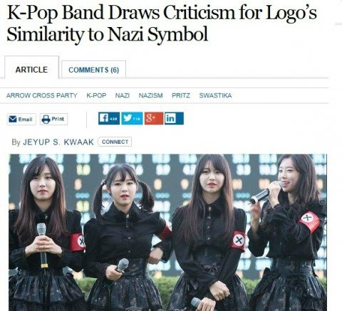 지난 13일 미국 월스트리트저널 인터넷 판은 “한국의 신인 걸 그룹 프리츠가 나치의 상징물을 연상시키는 붉은 완장을 차고 무대에 올랐다”고 전하며 비판의 날을 세웠다.