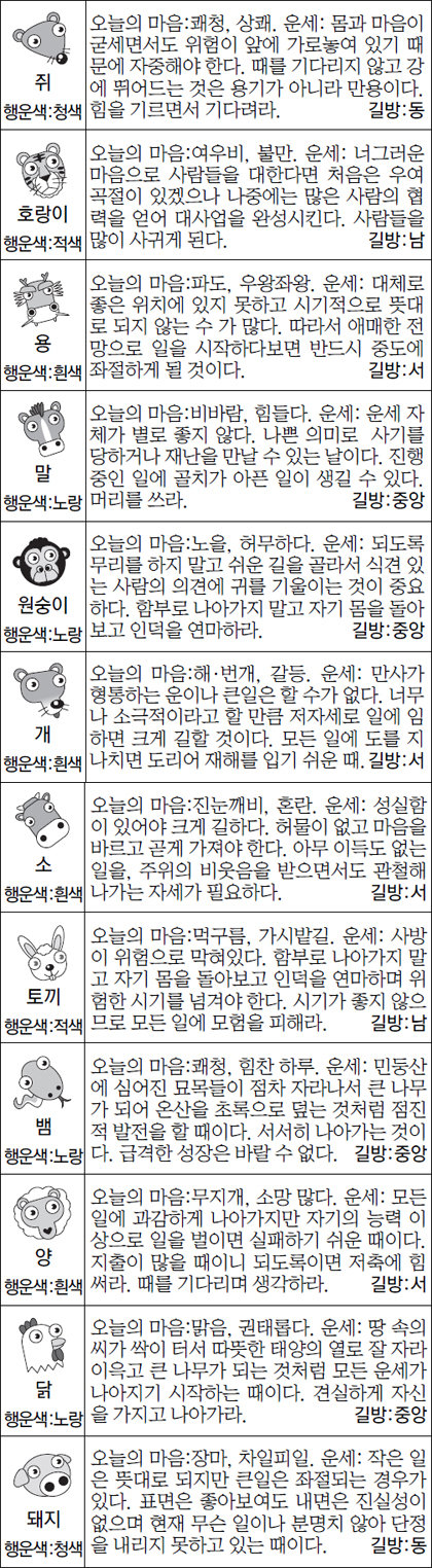금일 주식, 부동산 매도 행운의 띠: 호랑이,말,개