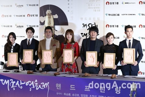 핸드프린팅 행사에는 이규태 대종상영화제 조직위원장과 지난해 대종상영화제 남녀주연상이자 홍보대사인 배우 송강호와 엄정화, 류승룡, 조정석, 장영남, 김수현, 서은아가 참석해 자리를 빛냈다.