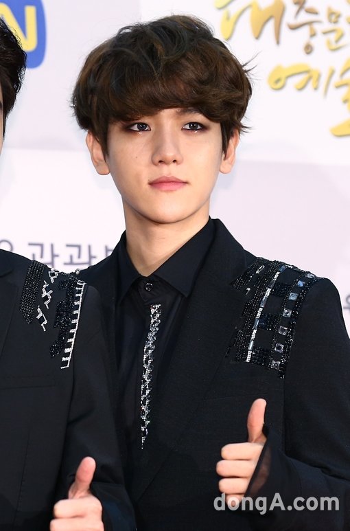 엑소의 멤버 백현이 17일 오후 서울시 종로구 홍익대 대학로 아트센터에서 열린 ‘2014 대한민국 대중문화예술상’에서 포토타임을 하고 있다.