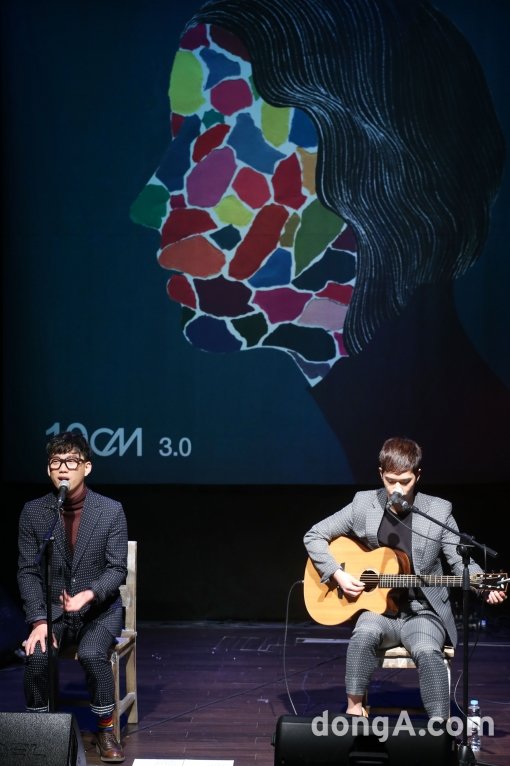 십센치가 18일 오후 서울 대학로 해피시어터에서 정규앨범 '3.0'발매 기념 미디어 쇼케이스에 신곡을 공개하고 있다.