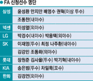 한편 FA 자격자 21명 중, 박진만과 군 입대가 예정된 두산 이원석을 제외한 19명이 신청서를 낸 것으로 알려졌다. FA들은 20일부터 26일까지 원 소속구단과 우선협상을 벌인다.
