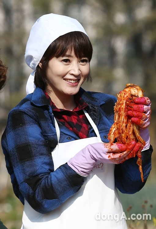 배우 김혜수가 20일 오후 서울시 한강대교 밑 노들섬에서 열린 SBS ‘잘 먹고 잘사는 법, 식사하셨어요? 김장특집’ 현장공개에서 김장을 하고 있다.