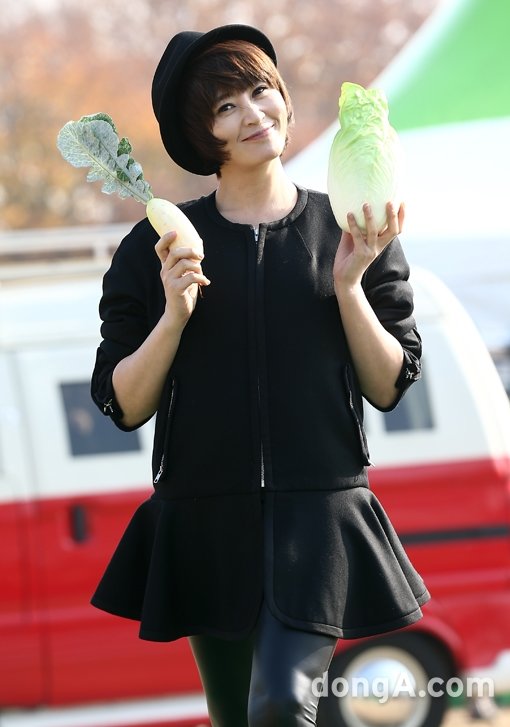 배우 김혜수가 20일 오후 서울시 한강대교 밑 노들섬에서 열린 SBS ‘잘 먹고 잘사는 법, 식사하셨어요? 김장특집’ 현장공개에서 배추카펫을 걷고 있다.