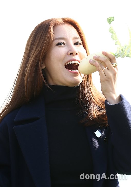 배우 이태란이 20일 오후 서울시 한강대교 밑 노들섬에서 열린 SBS ‘잘 먹고 잘사는 법, 식사하셨어요? 김장특집’ 현장공개에서 배추카펫을 걷고 있다.