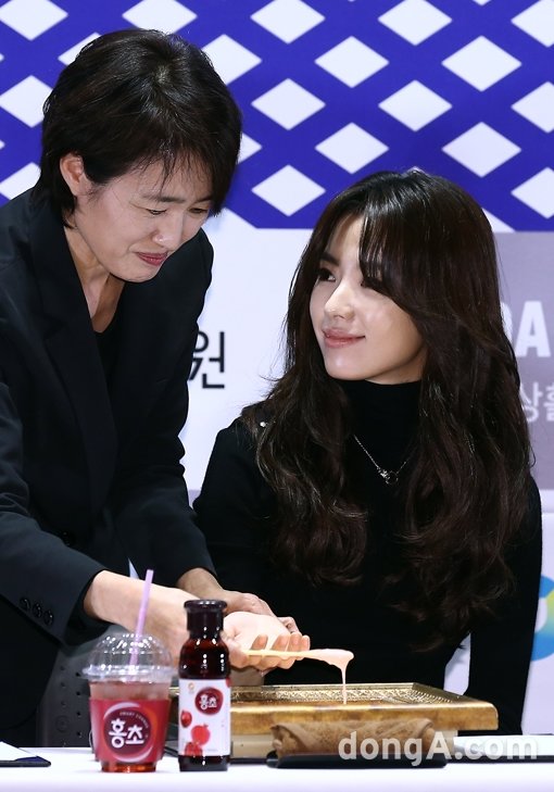 배우 한효주가 20일 오후 서울시 영등포구 여의도CGV에서 열린 ‘제25회 청룡영화상’ 핸드프린팅행사에서 핸드프린팅을 하고 있다.
