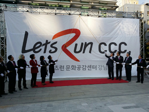 더 이상 그곳은 소음, 무질서, 담배연기로 가득한 도박시설이 아니었다. 세련된 현대적 시설에 쾌적한 분위기가 마치 호텔 로비에 온 듯 아늑했다. 문화공감센터(Culture Convenience Center)라는 이름 그대로였다. 한국마사회 렛츠런CCC 강남(이하 강남지사)이 19일 현판식을 열고 개관했다. 한국마사회가 장외발매소를 민원과 갈등을 빚는 기피시설이 아닌 지역 상생과 소통의 문화공간으로 바꾸기 위해 노력해 온 결실이다. 개관식에는 현명관(73) 한국마사회 회장, 신연희(66) 강남구청장, 김명옥(55) 강남구의회 의장과 지역주민 등 100여명이 참석했다.