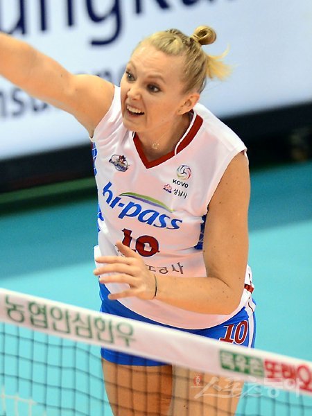 풍부한 레프트 교체자원을 가진 도로공사가 20일 대전 충무체육관에서 벌어진 NH농협 2014∼2015 V리그 인삼공사와의 2라운드에서 세트스코어 3-1 역전승을 거뒀다. 3연승으로 단독 2위다. 모처럼 선발출장한 김선영이 15득점으로 활약했고 에이스 니콜(사진)은 34득점(2블로킹 3에이스)을 기록했다. 41%의 공격성공률을 기록한 니콜은 트리플크라운에 블로킹에 하나가 모자랐다. 공격보다는 수비에서의 헌신이 더 눈에 띄었다. 1세트 인삼공사의 장점 디그가 살아났다. 초반 열세를 뒤집고 20점 이후 총력전에서 조이스가 고비마다 득점을 했다. 25-23으로 이겼다. 도로공사는 문정원이 4개의 범실로 무득점을 하며 상대의 기를 살려준 것이 아쉬웠다. 2세트 초반 문정원이 연타로 3점을 뽑으며 살아났다. 6-7에서 문정원의 에이스 등 서브 덕분에 3연속 득점을 했다. 주도권을 잡은 도로공사는 니콜의 확률 높은 공격을 앞세워 25-20으로 세트를 만회했다. 공격 수비에서 날아다닌 니콜의 세트였다. 2세트까지 19득점을 했던 인삼공사 조이스가 3세트 2득점에 그쳤다. 도로공사가 25-17로 쉽게 이겼다. 결국 인삼공사는 분위기 반전에 실패했고 도로공사는 교체 투입된 김미연이 7점을 폭발시키며 25-14로 경기를 마감했다. 도로공사는 5승째(3패 승점14)고 4연패의 인삼공사는 6패째(2승 승점7)다.