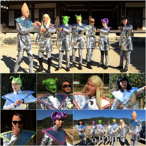 뿐만 아니라 보기만 해도 요절복통하기에 충분한 모습으로 변신한 이들 7인의 외계인들은 그동안 지구상에는 없던 ‘그로테스크’(grotesque)한 미션 수행으로 또 한번 웃음 폭탄을 안겼다. 외계인들의 독특한 식사법인 ‘런닝머신 과자 먹기’ 미션 수행을 하며 갖가지 표정과 굴욕적인 몸동작을 통해 몸 사리지 않는 몸개그 열전을 선보였다.