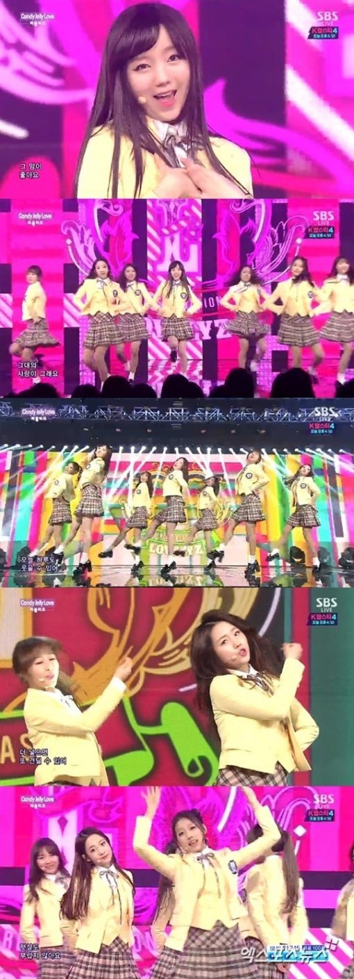 23일 생방송으로 진행된 SBS TV '인기가요'에서는 러블리즈가 출연해 신곡 '캔디 젤리 러브(Candy jelly love)'로 순수한 소녀의 매력을 선보였다.