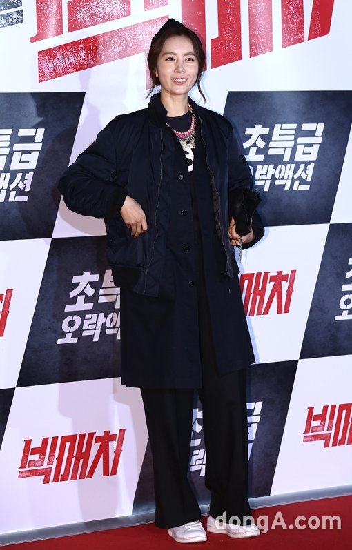 배우 김유미가 24일 서울시 성동구 왕십리CGV에서 열린 영화 ‘빅매치’ VIP시사회에서 포토타임을 하고 있다.